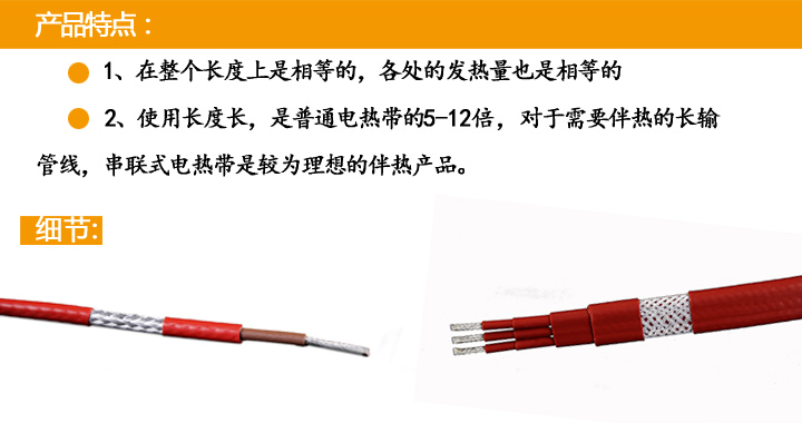 環(huán)瑞生產(chǎn)的串聯(lián)恒功率電伴熱帶適用于長距離管線的伴熱保溫,在具有一定電阻的芯線上通過電流,使各處的發(fā)熱量相等,保證伴熱溫度均衡。